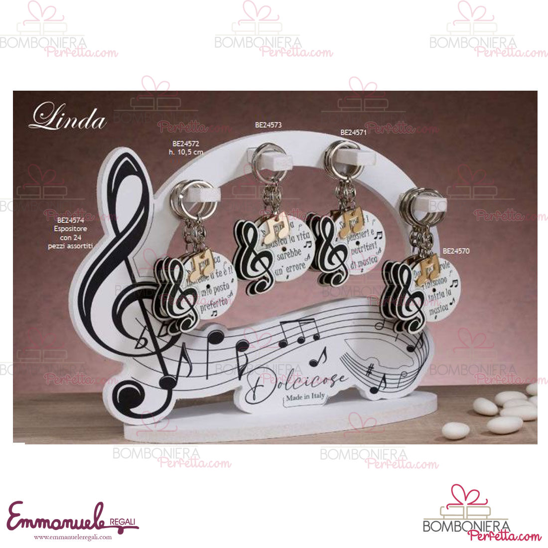 La linea Linda di Dolcicose è una collezione davvero originale con dei porta chiavi con musica e frasi ideali per i vostri eventi.