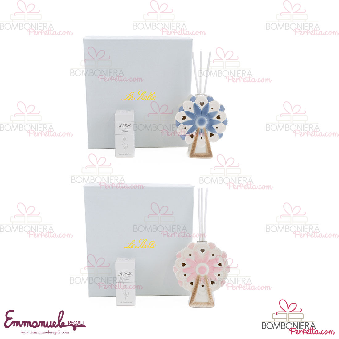 Il profumatore Ruota Panoramica celeste e rosa con astuccio è stato creato per la nuova collezione Le Stelle. Ideali come idea di Bomboniere o come articoli decorativi, perfetti per rendere la vostra casa o evento elegante e raffinato.