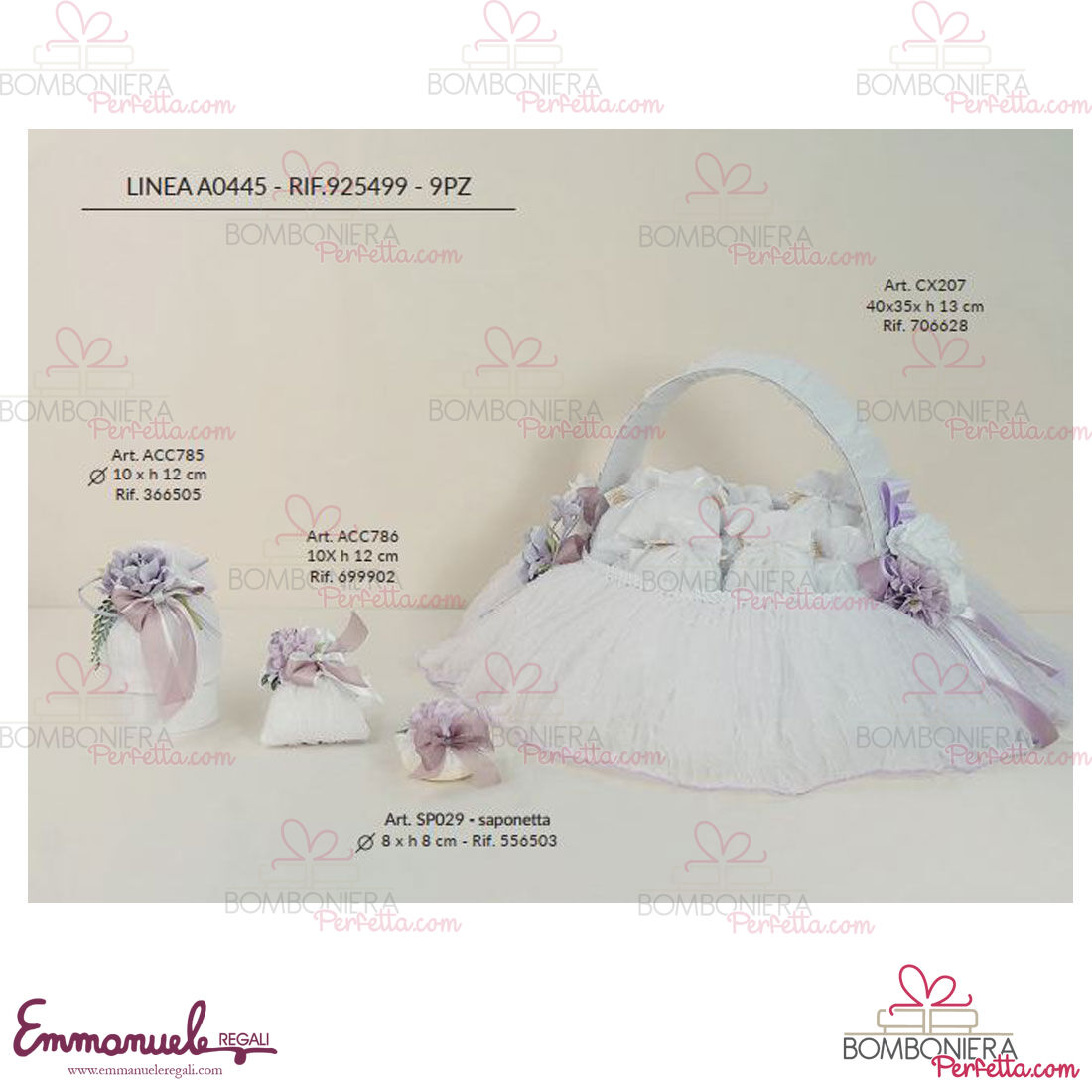 La linea A0445 de L'Infinito1972 è una collezione davvero delicata nei suoi colori delicati e neutri con Ballerine e bambole con idee davvero eleganti per ricordare i vostri eventi. L' azienda leader da 45 anni nella creazione di prodotti per occasioni speciali, propone un vasto assortimento di articoli studiati seguendo le nuove tendenze, ma mai dimenticando il gusto tutto italiano per il classico e la tradizione. I prodotti di competenza dell'azienda comprendono bomboniere ed accessori relativi ad essa, bambole e folletti da collezione, ballerine in porcellana, vetri artistici e cristalli, corredo arredo, arredo funzionale, profumatori e saponeria, statuine in porcellana, ceramiche artistiche, articoli di limoges, legno, resina artistica, sheffield ed argento, album fotografici, vangeli e fiocchi nascita, creati per condividere e ricordare i momenti più preziosi ed indimenticabili della nostra vita. Ogni prodotto a marchio L'Infinito viene esaltato da una certosina lavorazione artigiana ed impreziosito da materiali di prim'ordine, tra i quali spiccano le pregiate stoffe e la rinomata porcellana di Capodimonte , tipiche della località nella quale il marchio è andato evolvendosi.