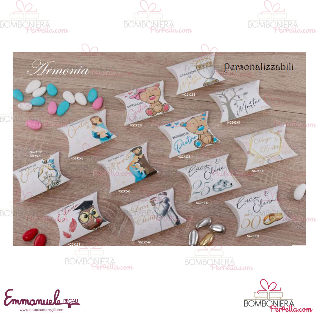 Tutta la linea è completa di scatola originale e di certificato di autenticità Dolcicose,è compreso un astuccio porta confetti in pvc.