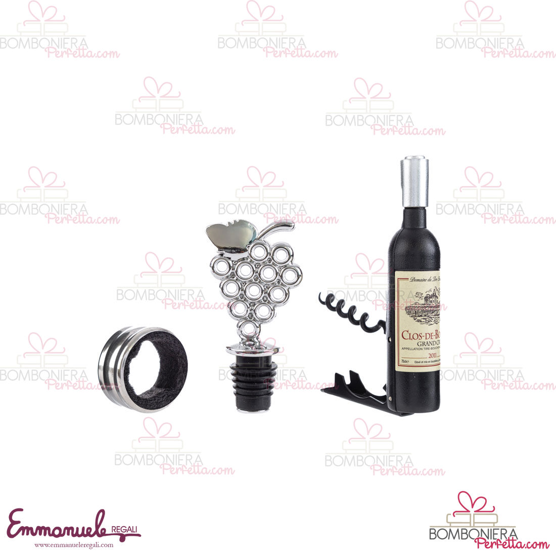 Il Set 3 pezzi accessori vino è stato creato per la nuova collezione Le Stelle. Ideali come idea di Bomboniere o come articoli decorativi, perfetti per rendere la vostra casa o evento elegante e raffinato.