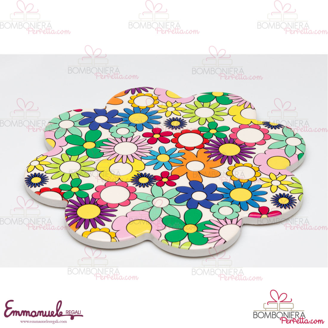 Il sottopentola colorato fiore della collezione Fiorello Amici di Cuorematto, è un'idea di bomboniera e articolo decorativo, perfetto per rendere i vostri eventi unici.