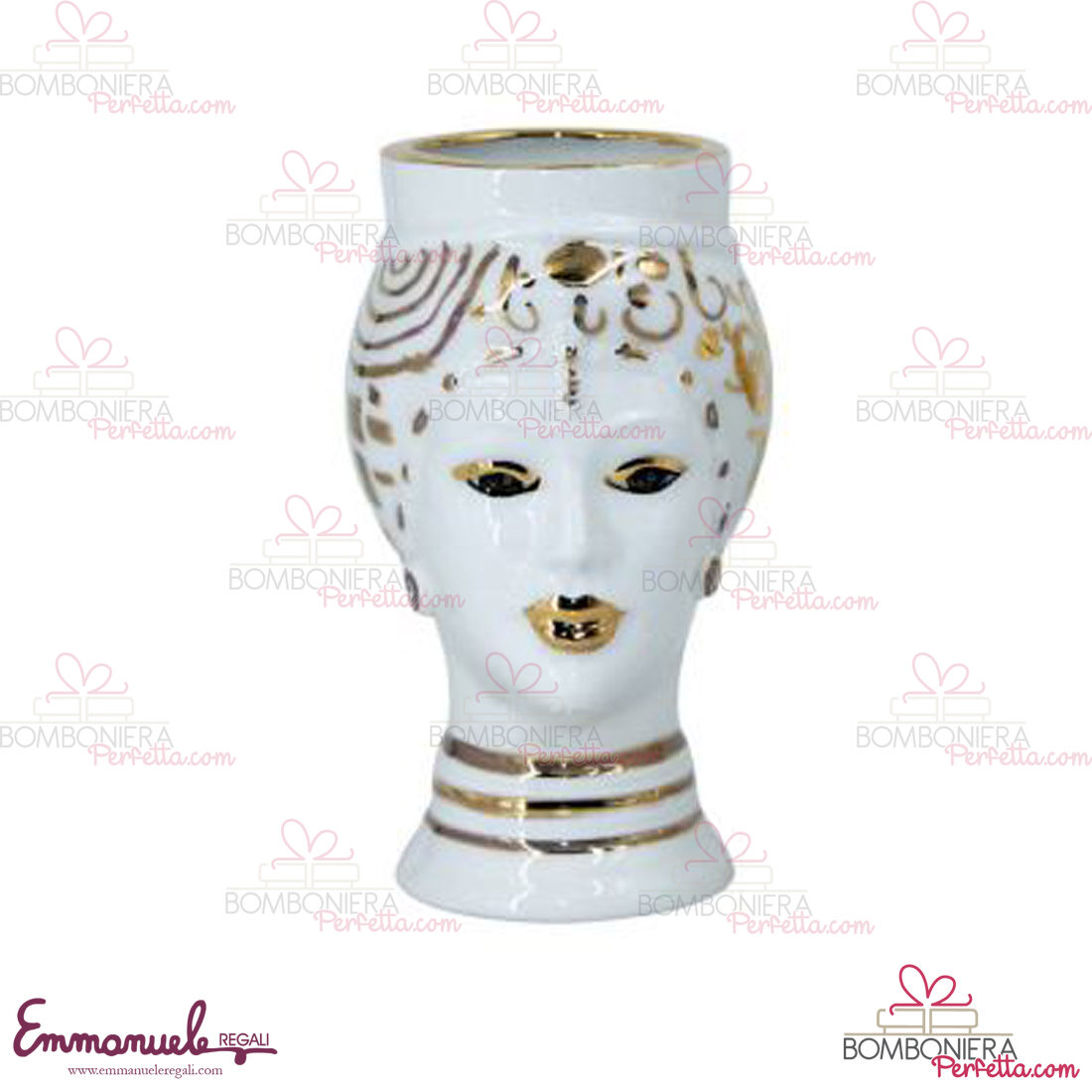 Le teste di moro Token decorate oro  in ceramica come tutti gli altri articoli di "Le Ceramiche di Nonna Rosa" sono interamente realizzati a mano da maestri artigiani siciliani.
