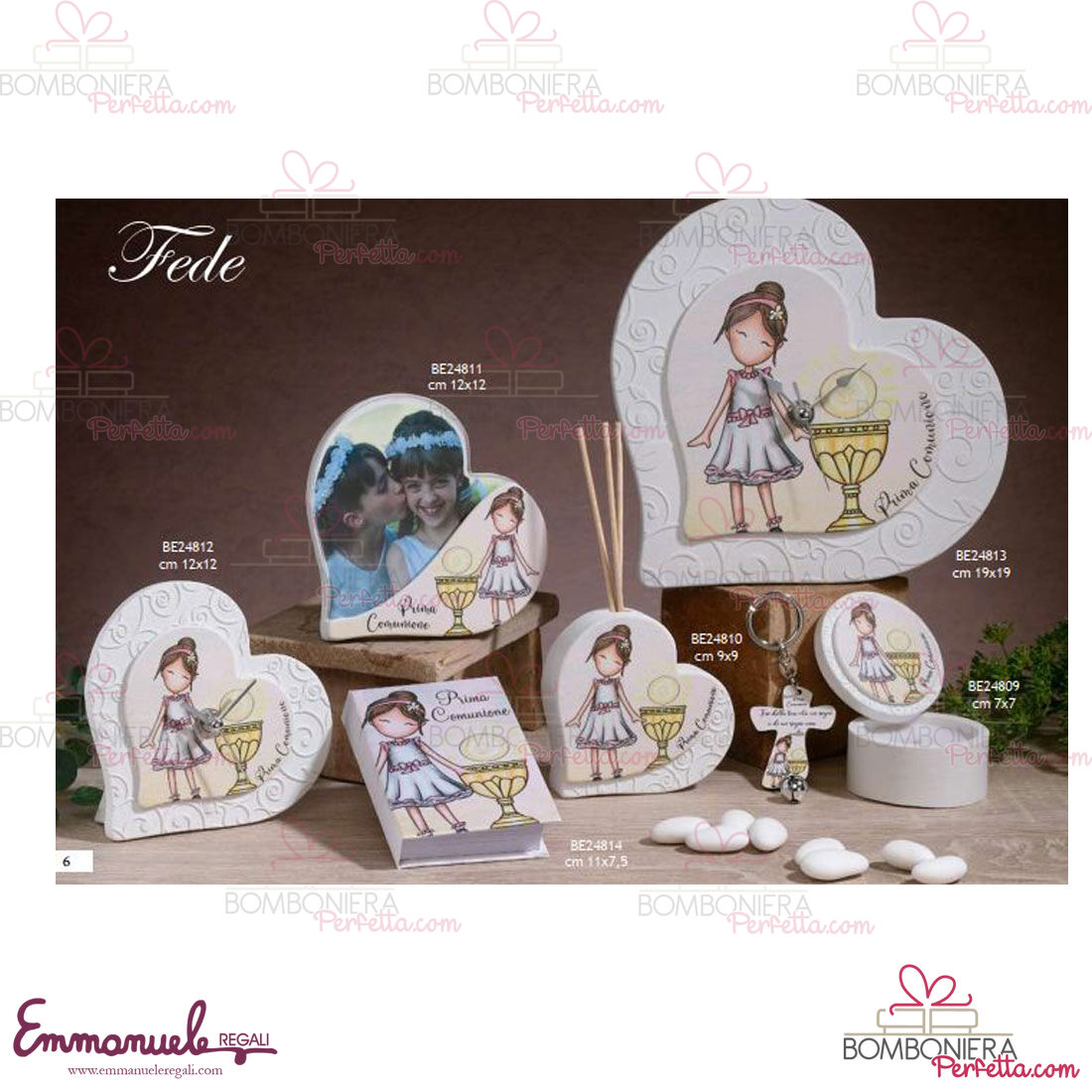 La linea Fede di Dolcicose è una collezione davvero originale con particolari  diffusori, portafoto,orologio, vangelo,portachiavi e scatola candela con un dolce decoro per prima comunione femmina.