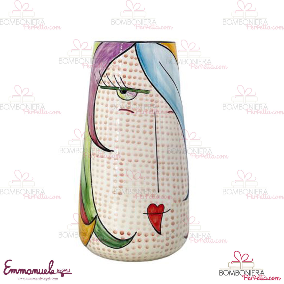 Il vaso con viso elegante come tutti gli altri articoli di "Le Ceramiche di Nonna Rosa" sono interamente realizzati a mano da maestri artigiani siciliani.