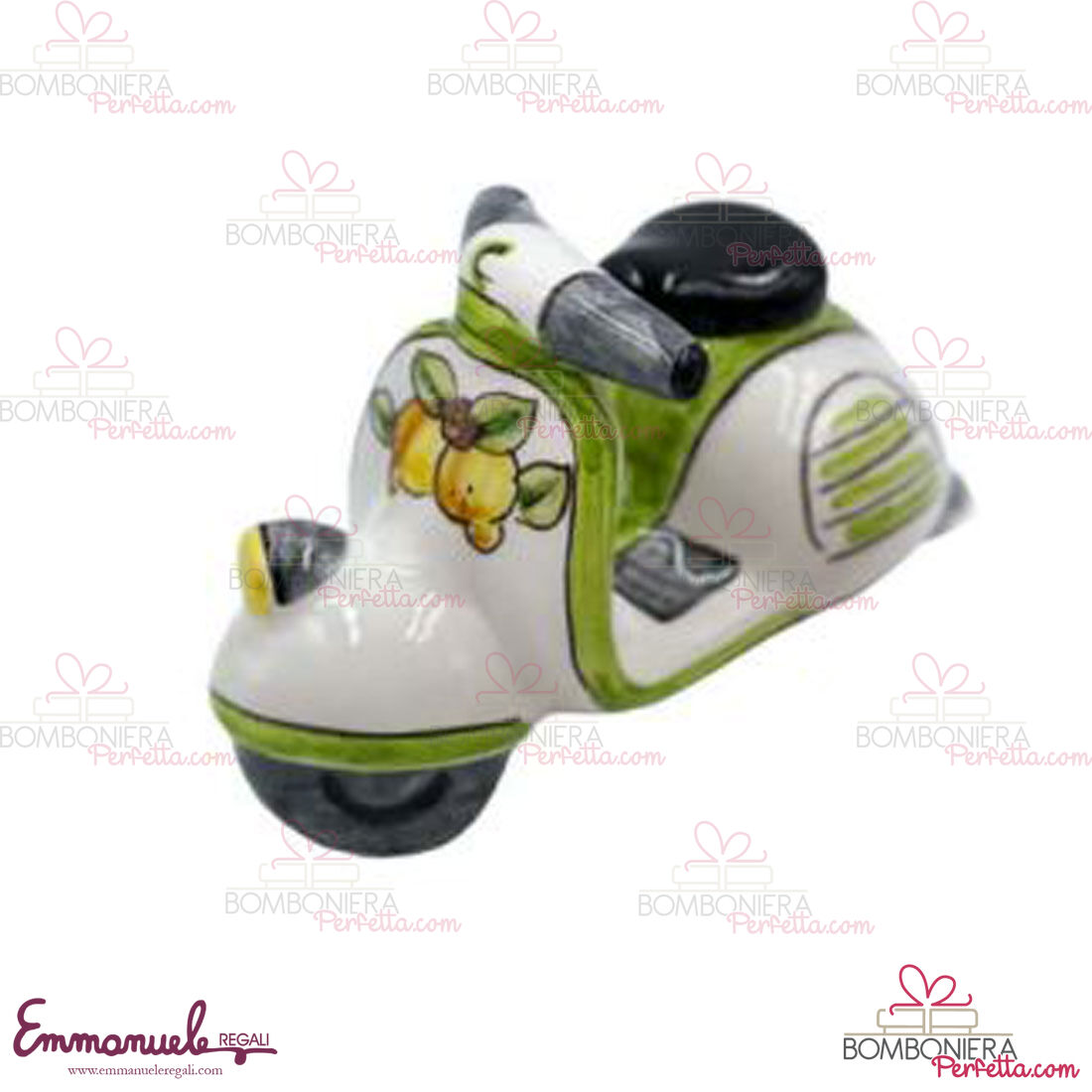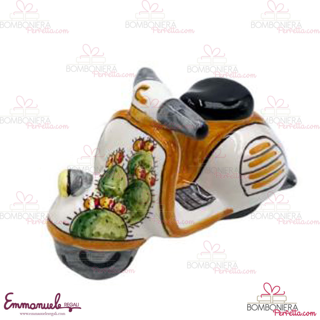 La vespa con fruttini come tutti gli altri articoli di "Le Ceramiche di Nonna Rosa" sono interamente realizzati a mano da maestri artigiani siciliani.