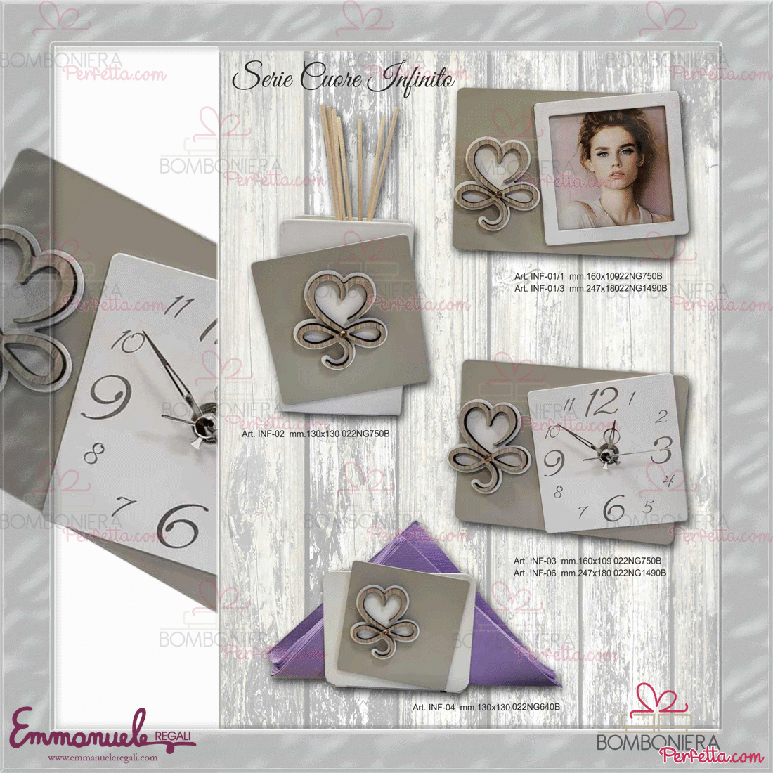 La serie "Serie Cuore Infinito" collezione di Negò è una linea di originali profumatori, orologi e portacarte con metallo grigio seta e bianco, con applicazione magnetica infinity love.