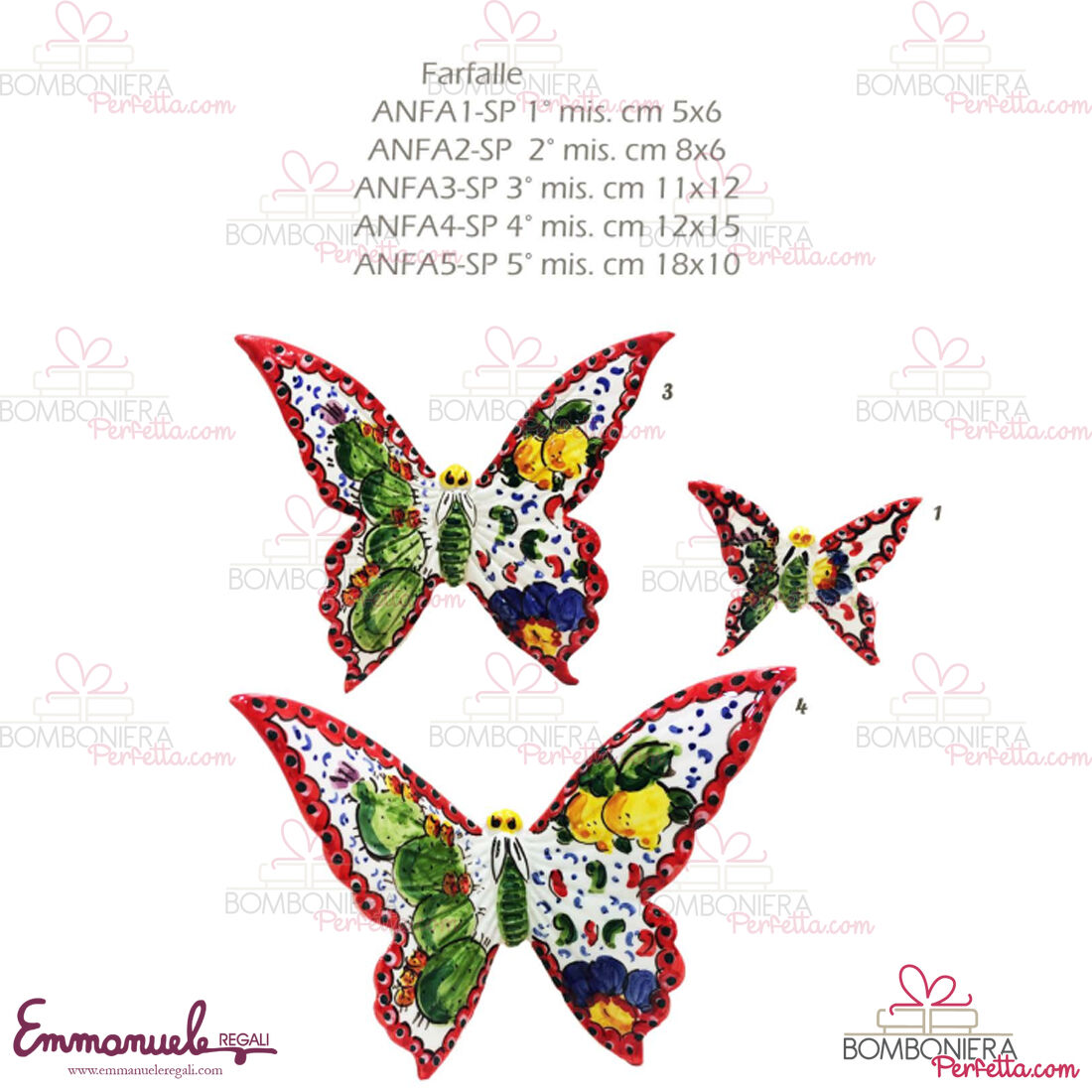 La linea" Farfalla Decoro Carretto " di le ceramiche di Nonna Rosa è una linea di Regalo/Bomboniera realizzata in Ceramica interamente dipinta a mano. Essendo una ditta artigianale con un costo aggiuntivo è possibile personalizzare con colore, nome del festeggiato/festeggiata e ricorrenza l'oggetto scelto da voi.