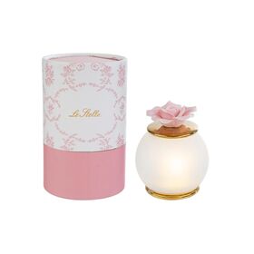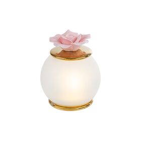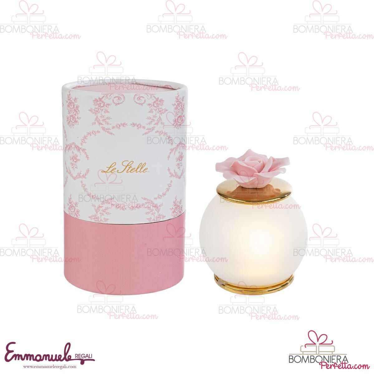 Lampada LED con fiore rosa in vetro, dal design elegante e moderno, ideale come bomboniera per matrimonio.