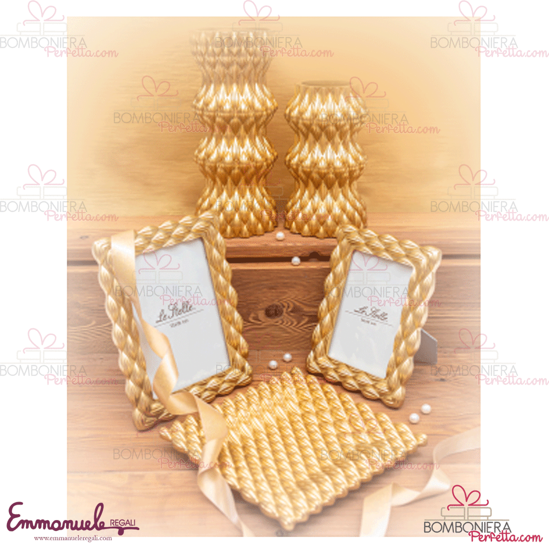 La Linea "Onde Oro", collezione Le Stelle è una linea di portafoto, vaso e vassoio in resina oro molto originali ed ideali per ogni vostra occasione.