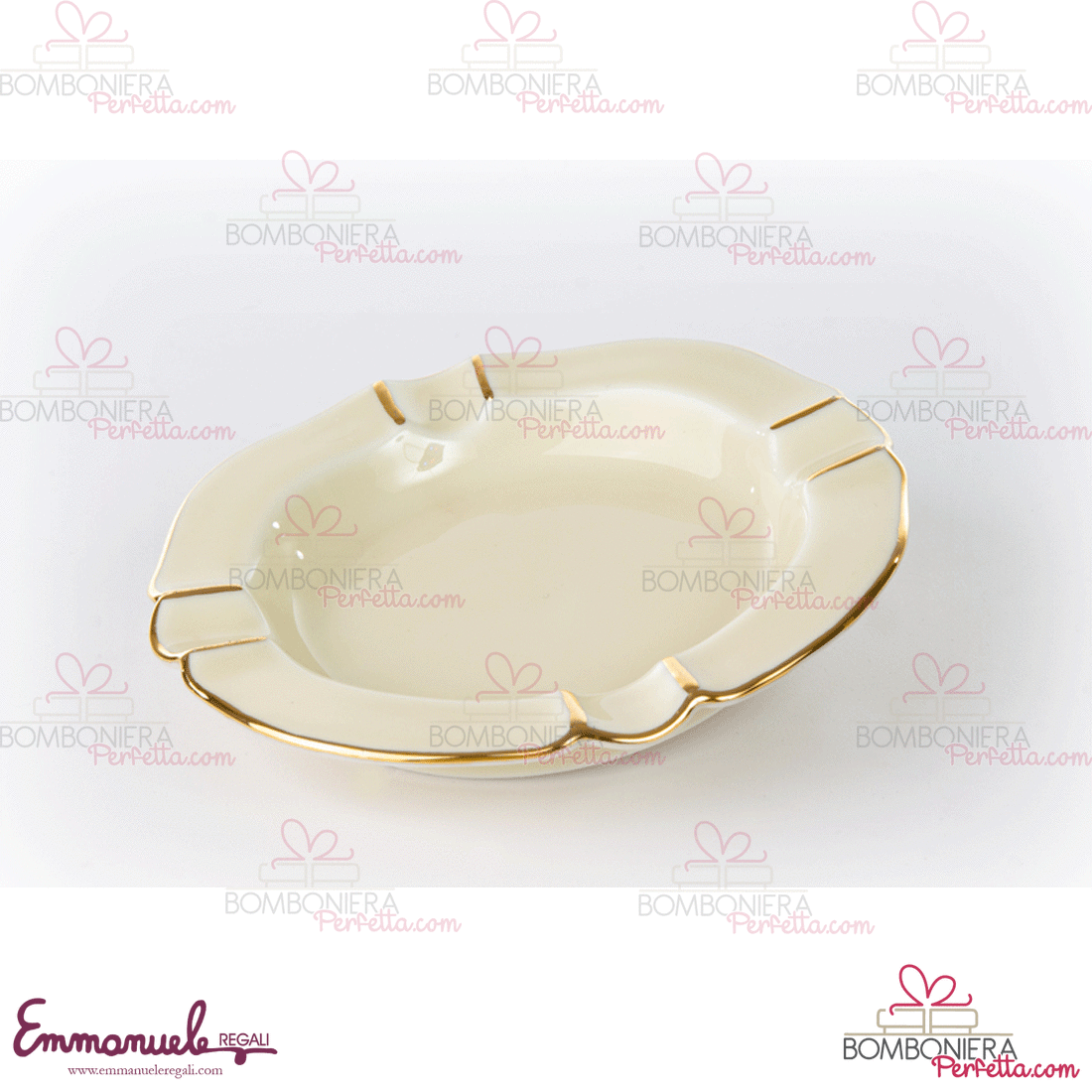 Bomboniera solidale della linea "Etoile" collezione di Cuorematto propone una linea di limoges francese in avorio con un delicato decoro in oro, personalizzabile con le vostre iniziali.