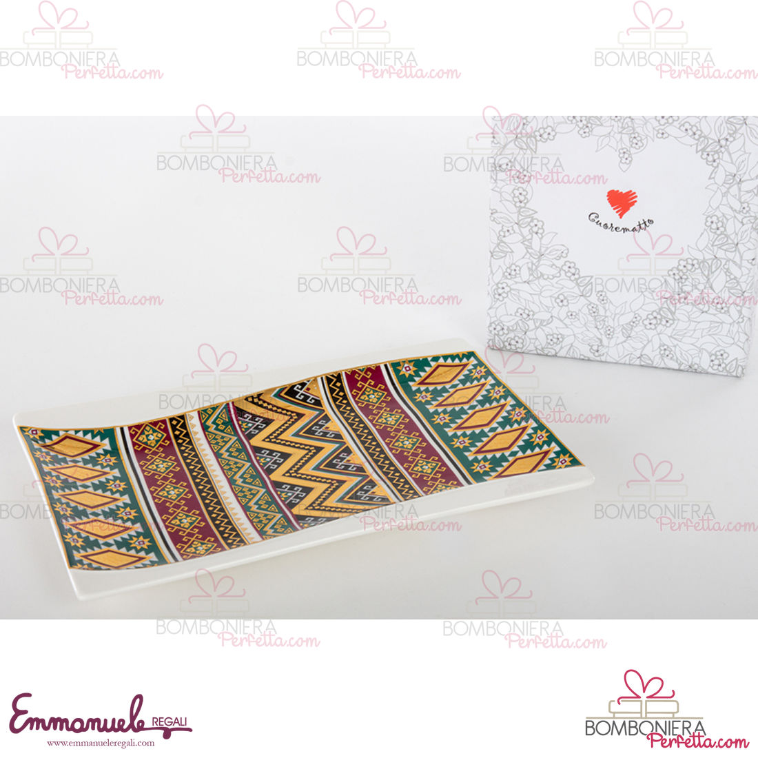 Bomboniera solidale " Vuotatasche in ceramica con decoro arabeggiante " collezione Cuor d'oriente di Cuorematto, vuotatasche in ceramica con colori e decoro arabeggianti. Completo di scatola regalo.