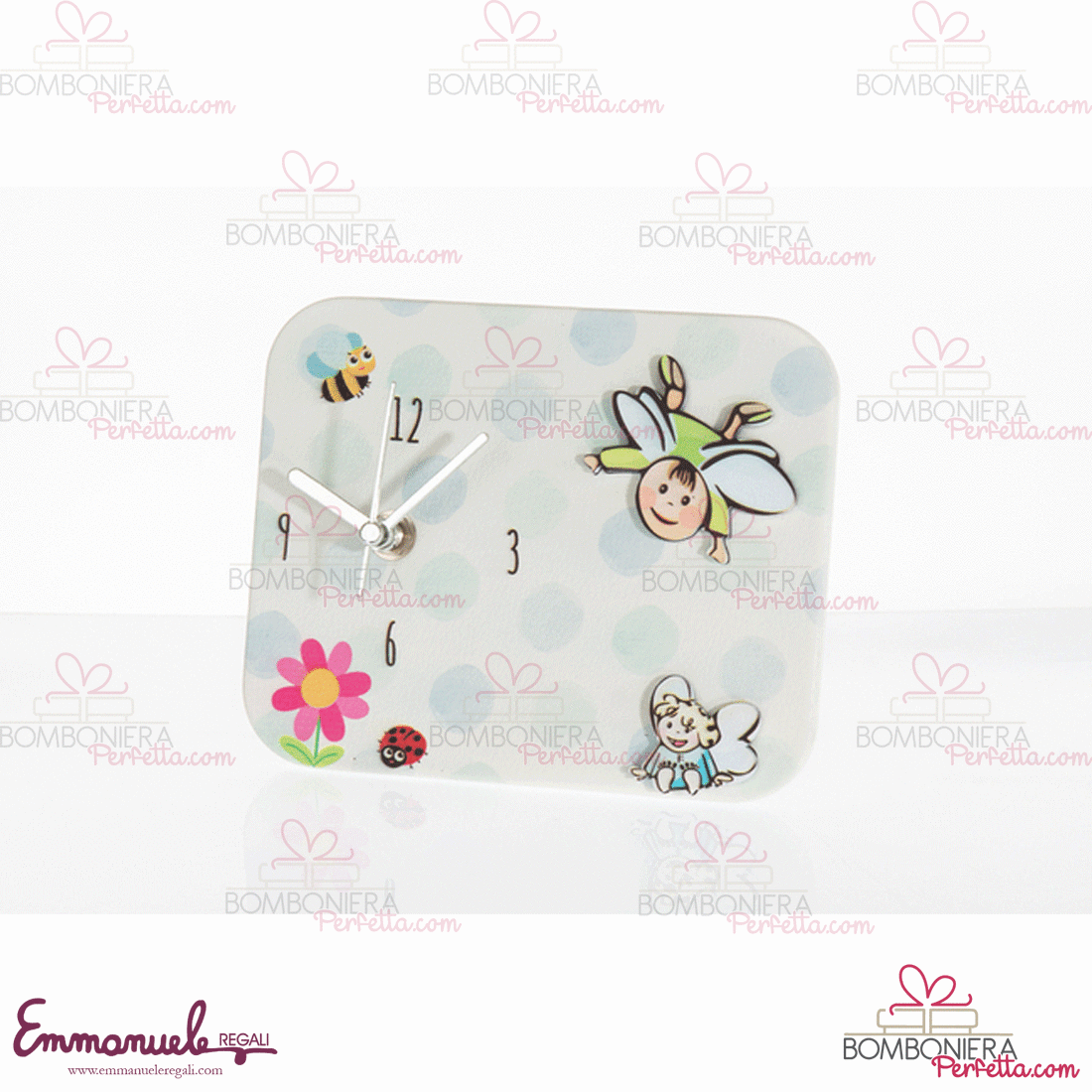 Bomboniera solidale Orologio Angeli M 16x14-CuoremattoPortafoto Angeli M 6x9-Cuorematto" collezione di Cuorematto. Le Bomboniere adatte per ricordare uno dei vostri momenti più importanti come: Compleanno, Anniversario, Comunione, Matrimonio, Laurea, Cresima, Nascita, Battesimo.
