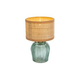 Questa lampada in vetro verde, con dimensioni compatte di 12x12xh.19 cm, si distingue per un design moderno e raffinato.