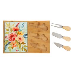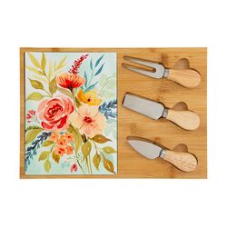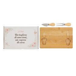 SET 3 PEZZI TAGLIERE IN LEGNO +POSATE FORMAGGIO CON SCATOLA CON FIORI COME INTERNO - LE STELLE